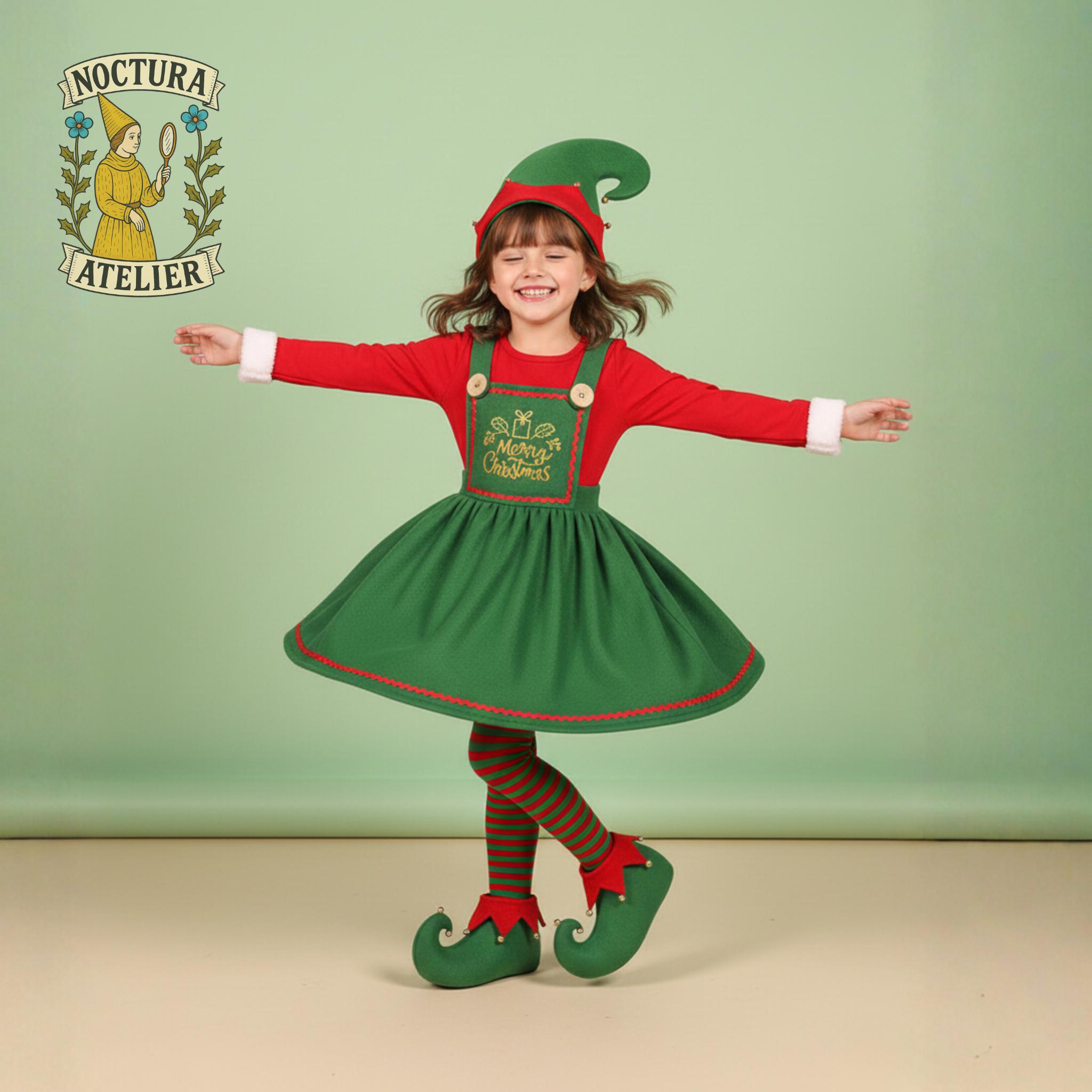 Kids Christmas Elf Costume,Holiday Dress-Up Cosplay,Green Santa's H...
