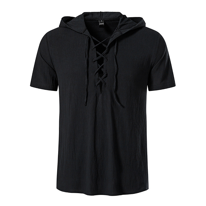 Medieval Viking T-shirt Cotton Short Sleeve Hooded Shirts Men's Ret...