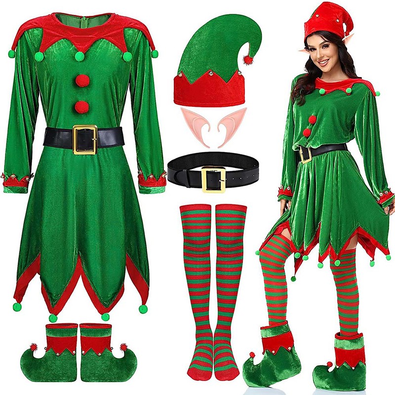 Elf Fancy Christmas Dress Santa Suits Cosplay Costumes Men's Women'...
