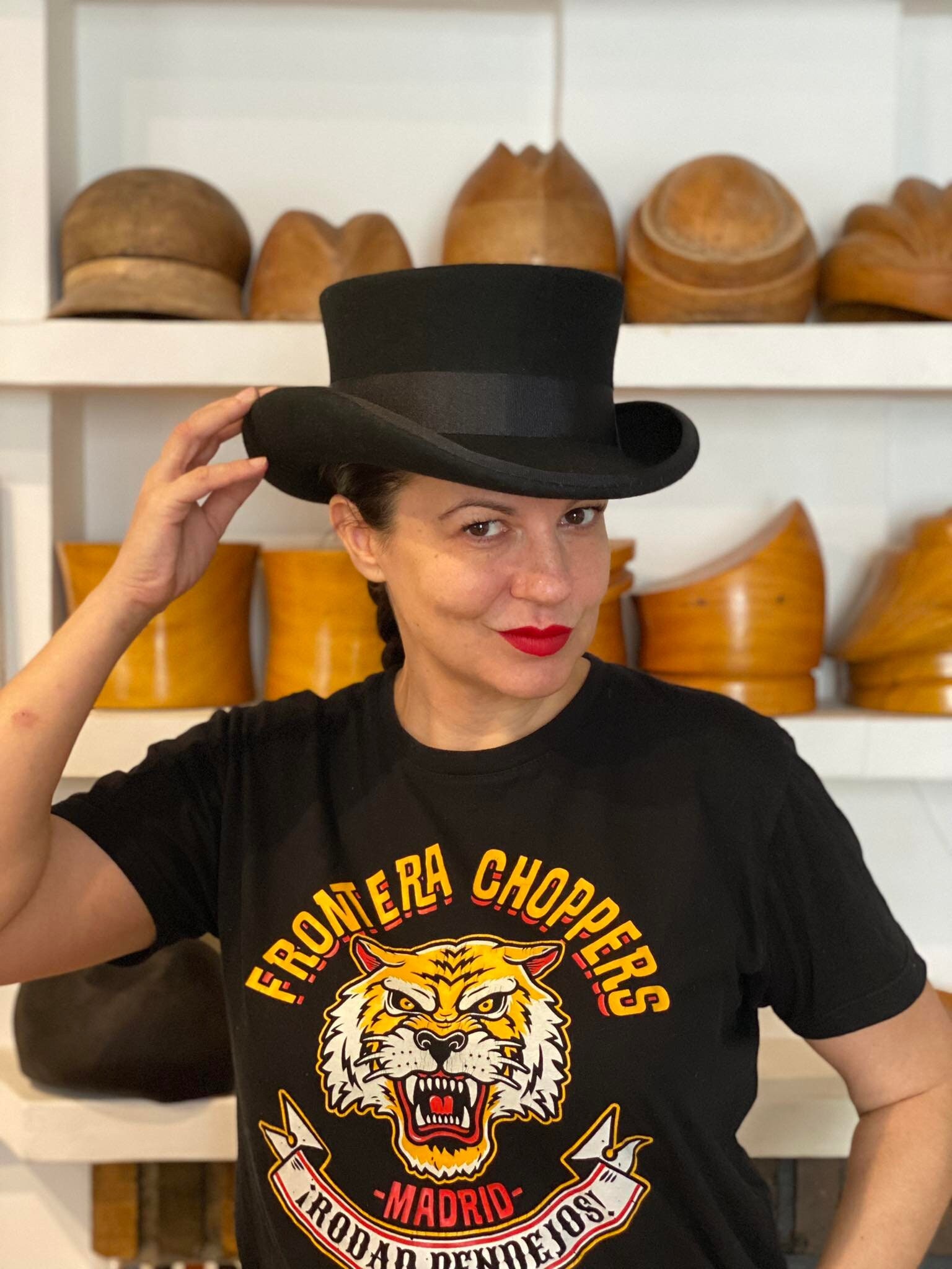 * Stunning medium low top hat from wool felt, stiffened and hand blocked over millinery wooden hat b...