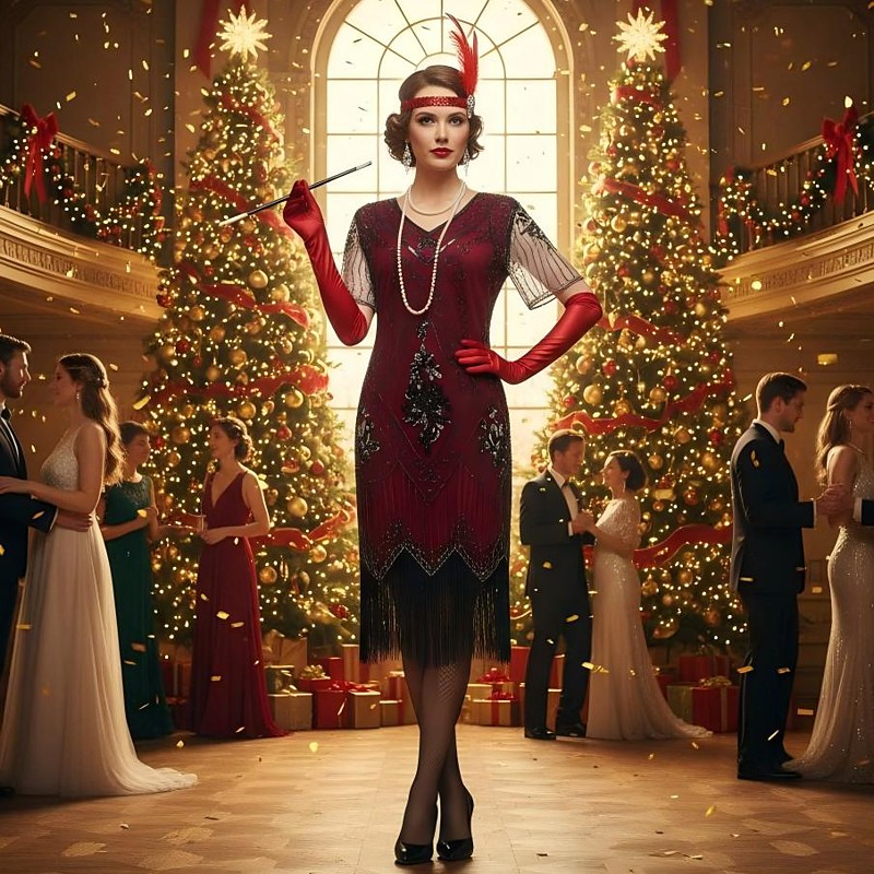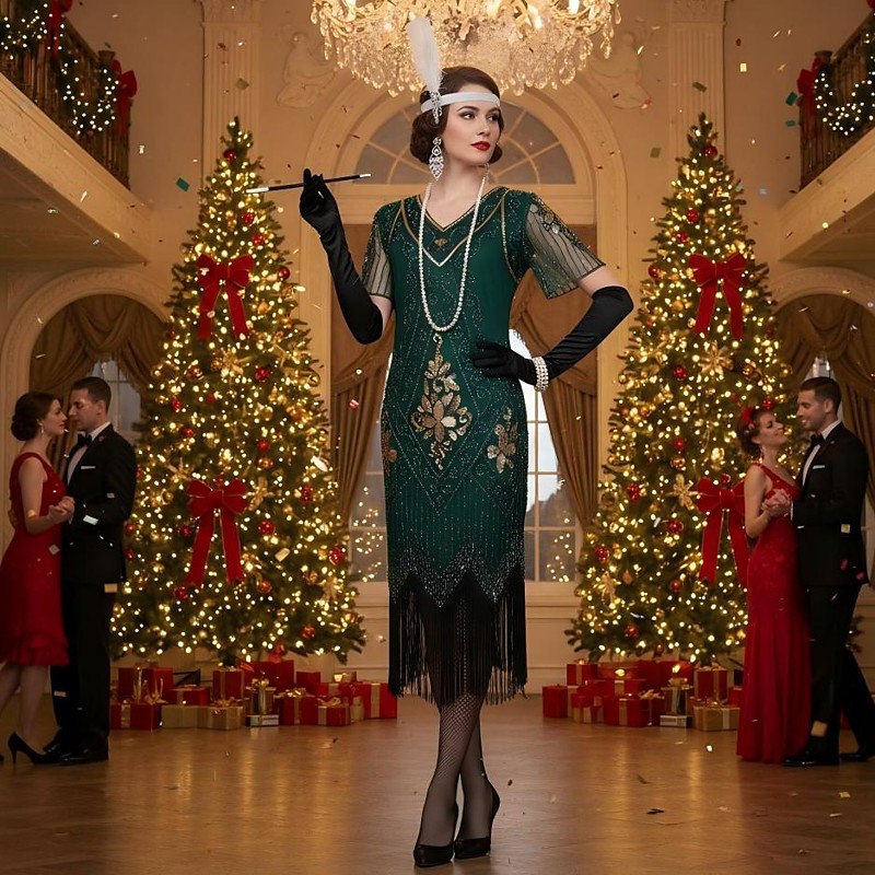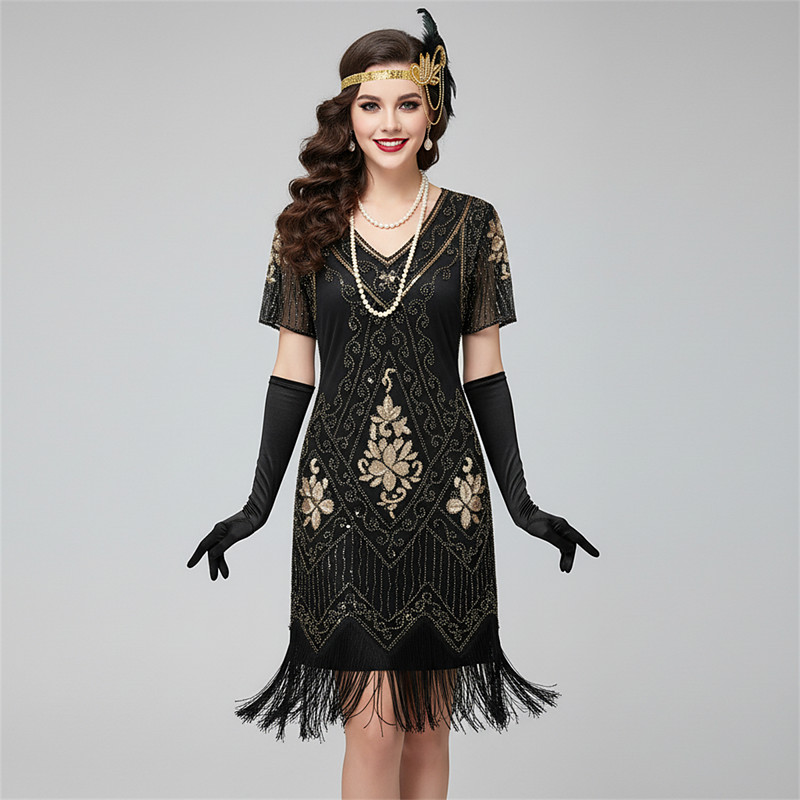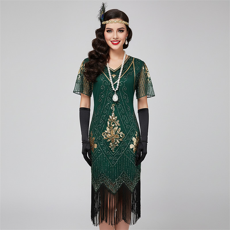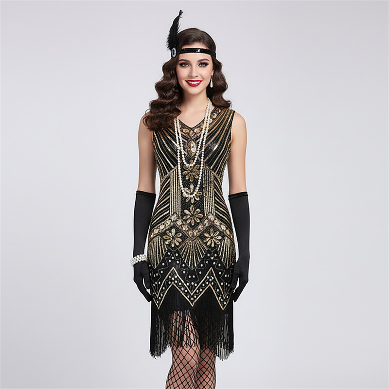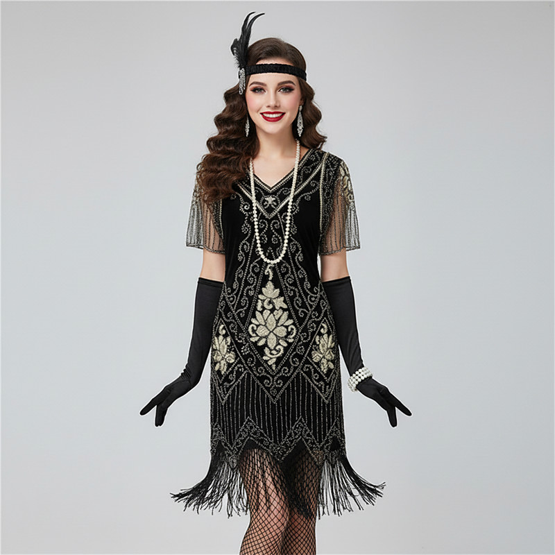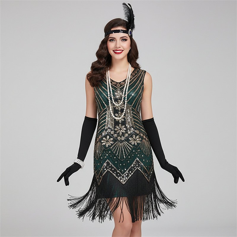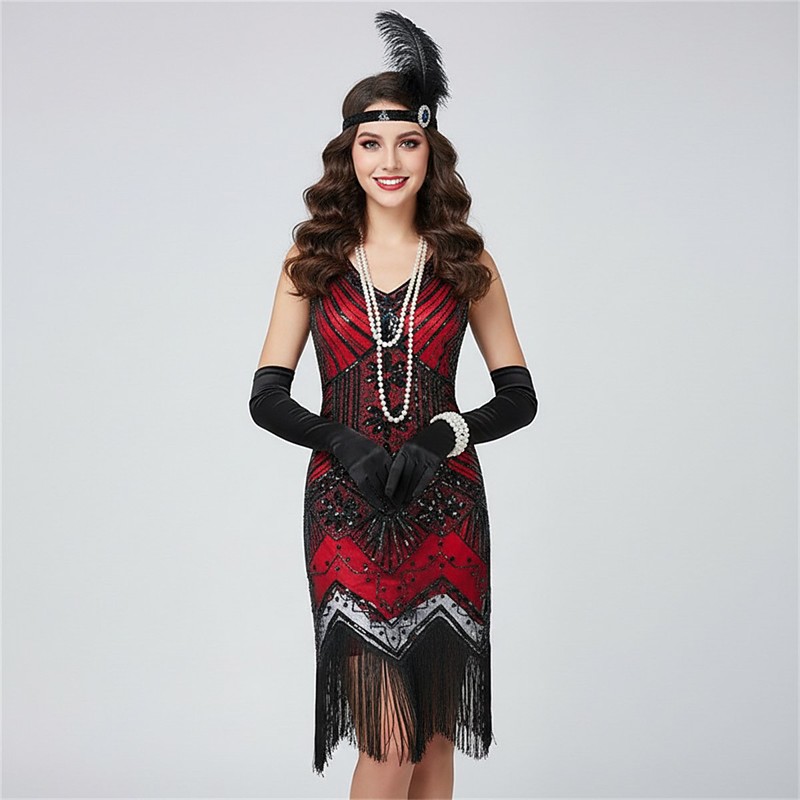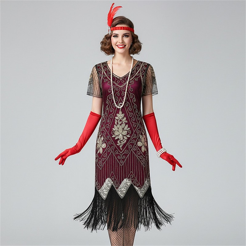 Set Roaring 20s 1920s Flapper Dress Cocktail Dress with Accessories...