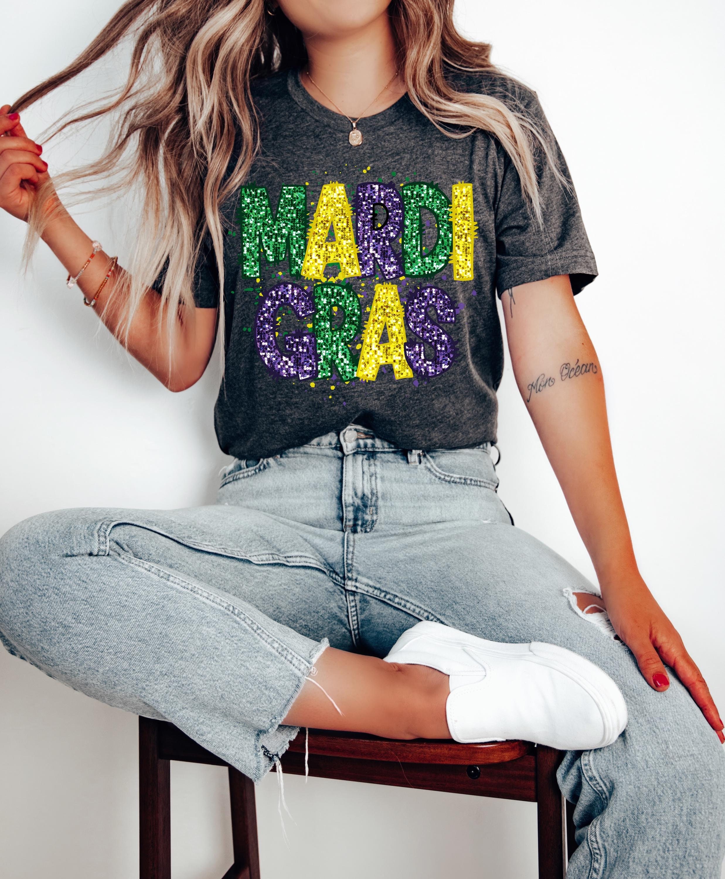 Faux Sequin Glitter Print Mardi Gras Shirt | Fun Mardi Gras Shirts ...