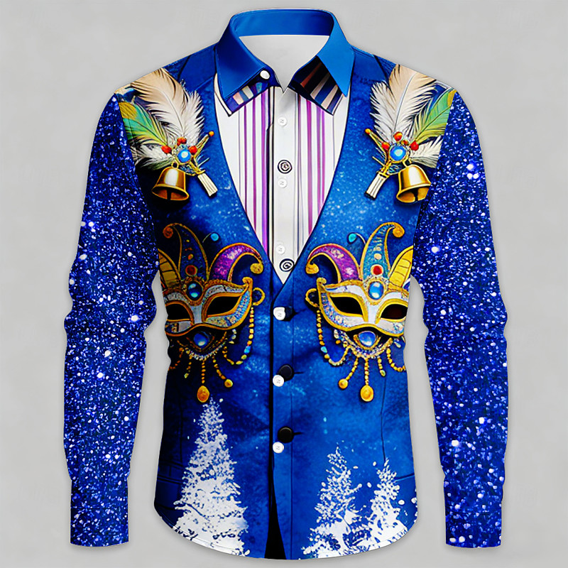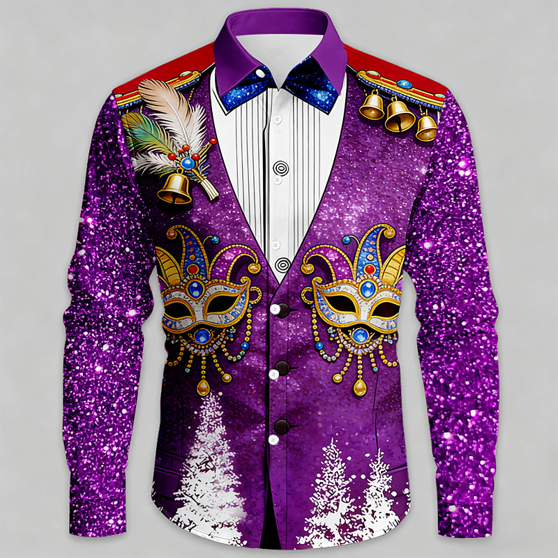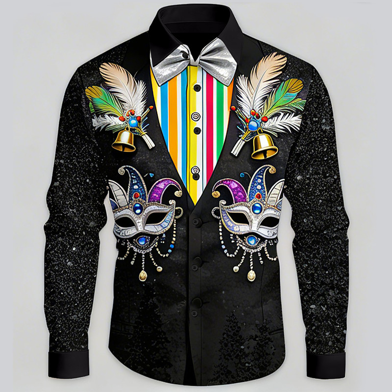 Mardi Gras Men's Carnival Faux Collar and Suit Design Mask with Fea...