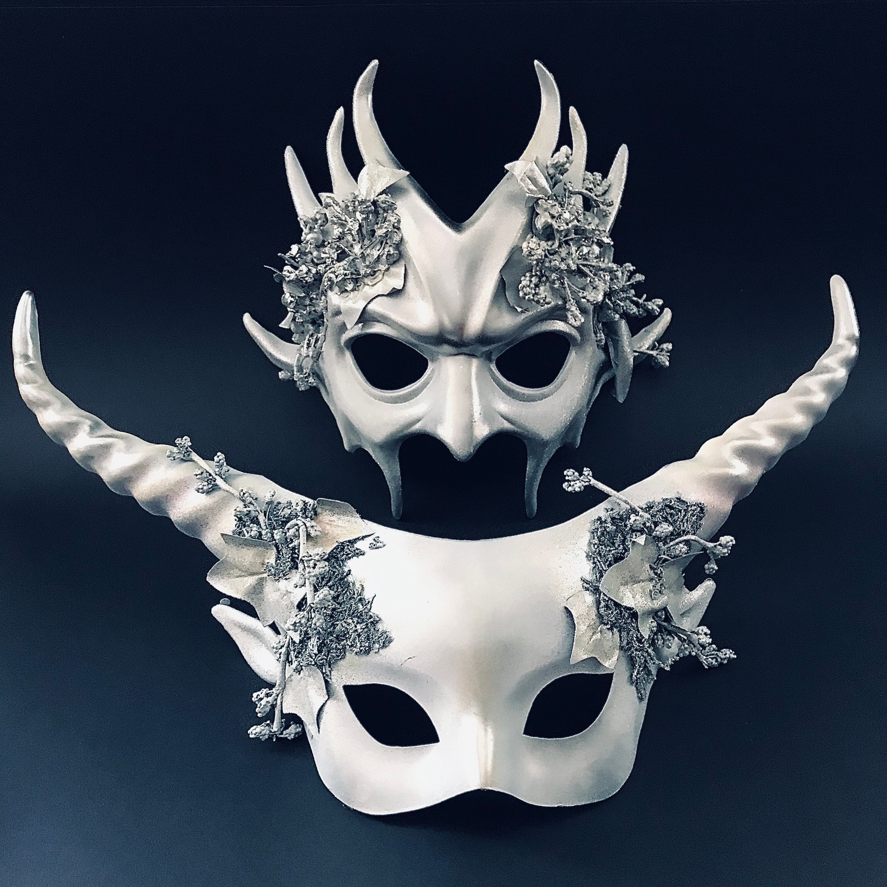 NEW Masquerade mask in forest creature design! the first pic mask is a cream white shade mixed with ...
