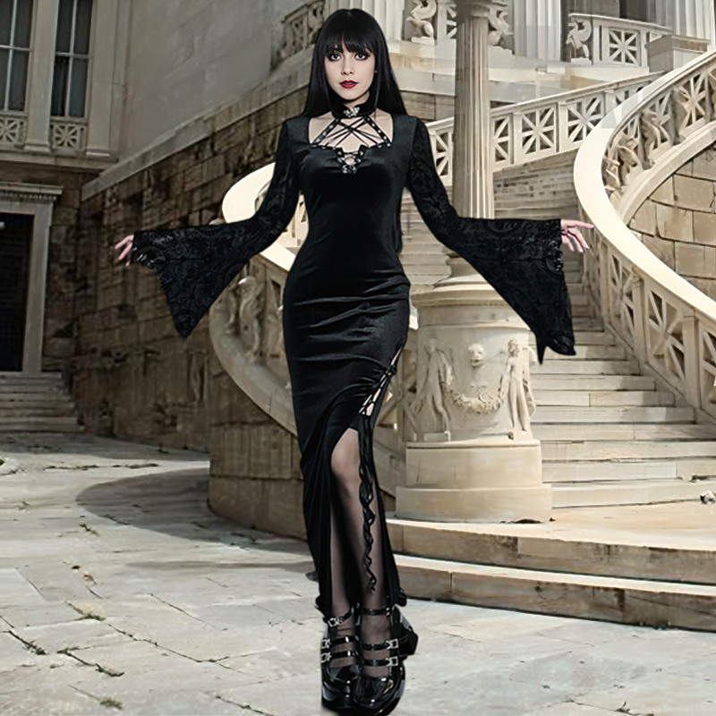 Retro Vintage Punk Gothic Medieval Dress Prom Dress Slit Dress Norm...