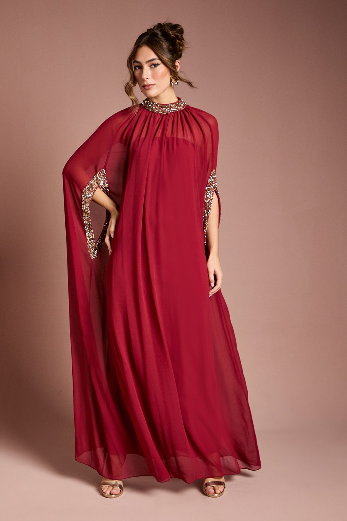 Coast Womens Muse Chiffon Cape Dress - Wine - Size 10 UK | Coast Sa...