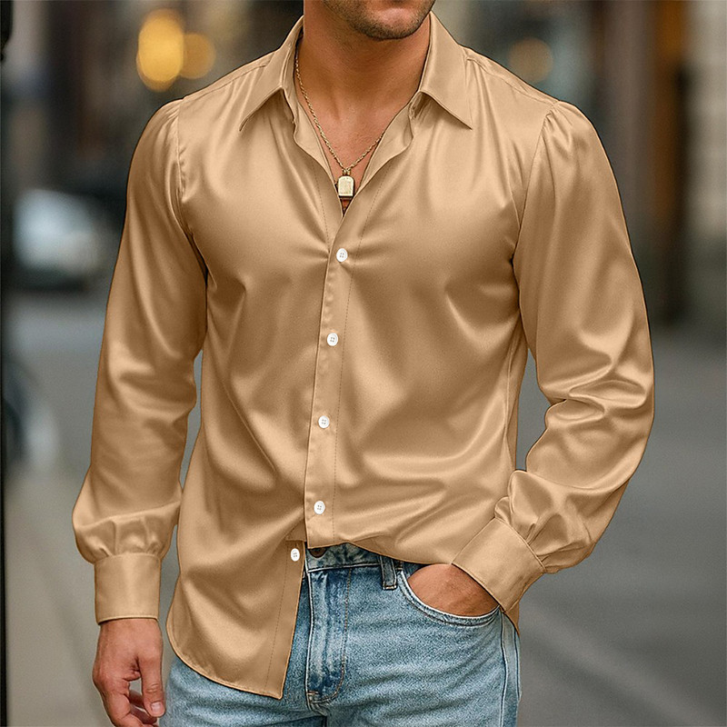 Men's Shirt Satin Shirt Dress Shirt Casual Shirt Button Up Shirt Pr...