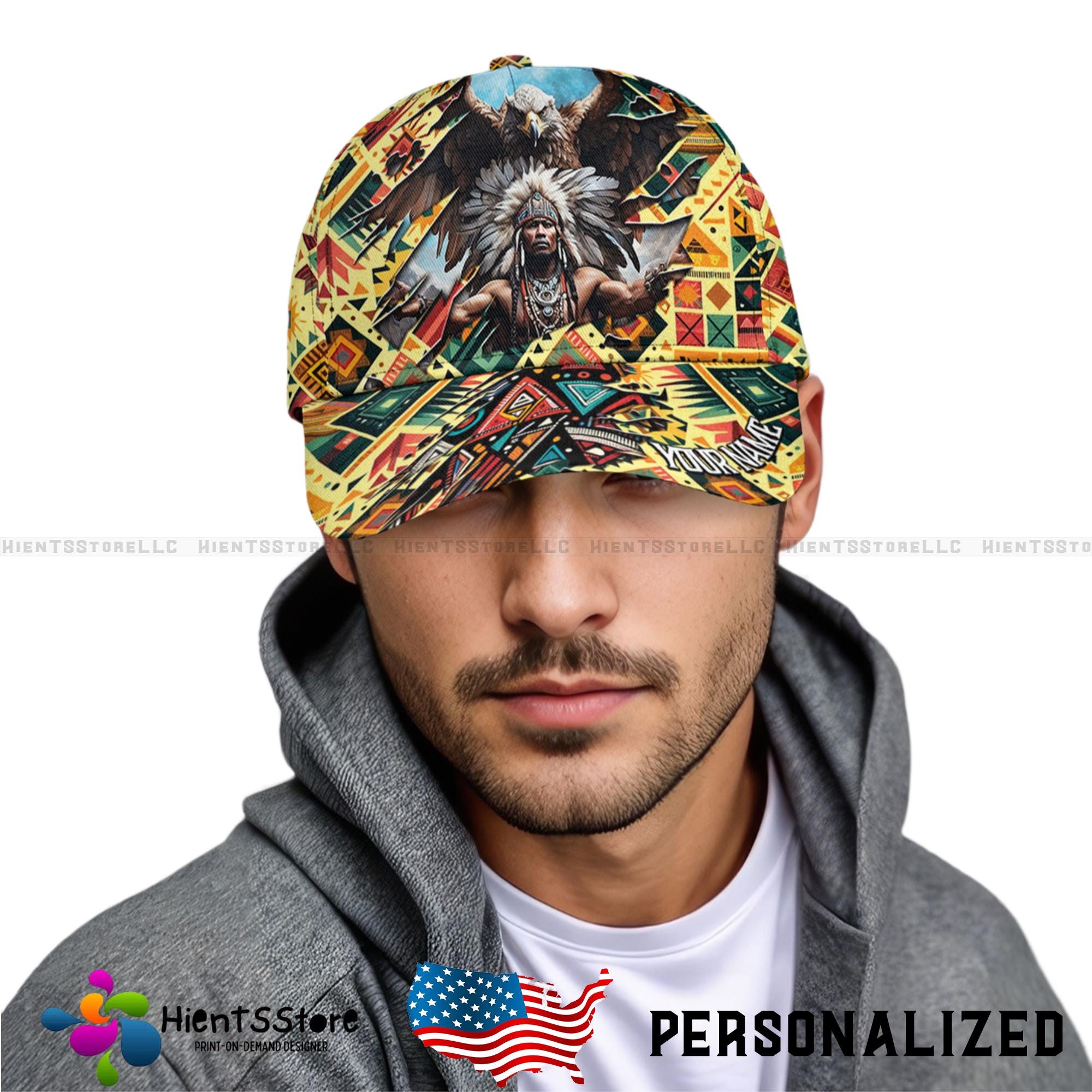 HienTSStoreLLC Store This customized Native American-themed 3D-printed baseball cap showcases a powe...