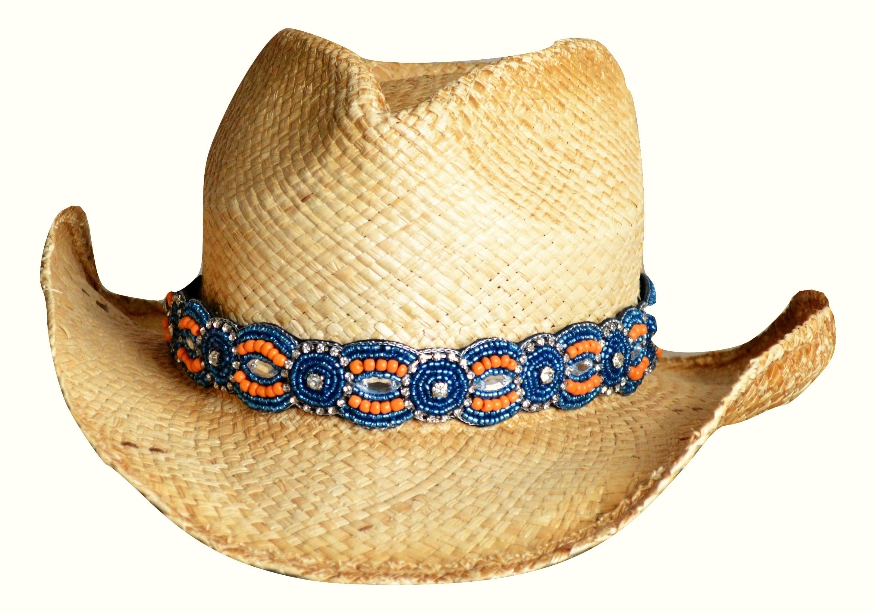 Blue & Orange Hat Band - Crystal Hat band - Adjustable Hatband ...