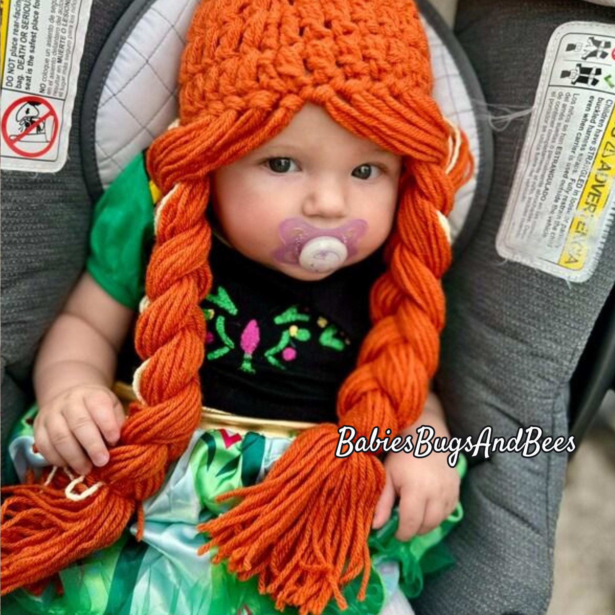 Crochet Wig Hat, ALL SIZES, Kid Halloween Costume Girl, Princess Wig, Red Braids Wig Hat, Newborn Ph...