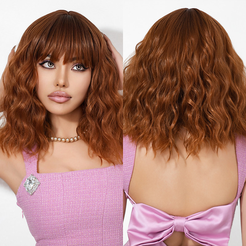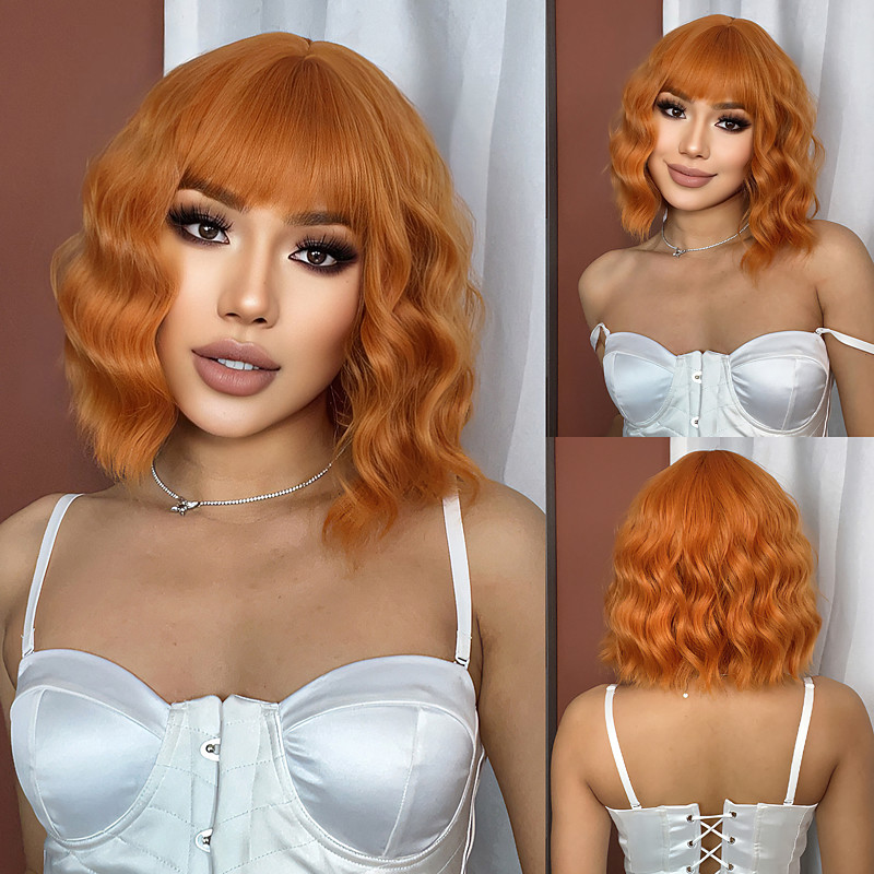 • Cosplay Costume Wig Curly Bouncy Curl Bob Neat Bang With Bangs Wig ...