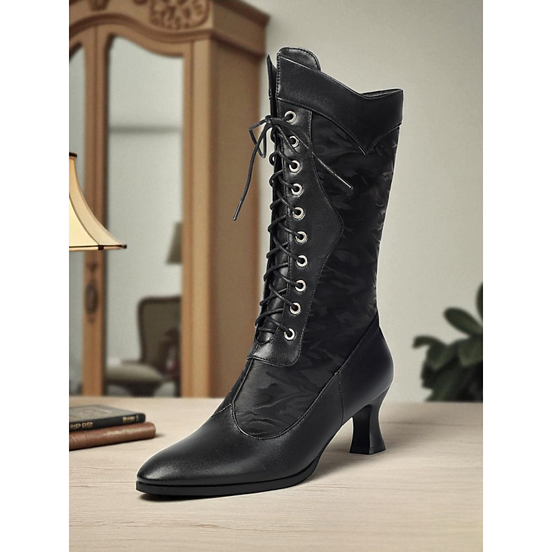 Women's 1920s Victorian Lace-Up Mid Heel Boots - White Vintage Stea...