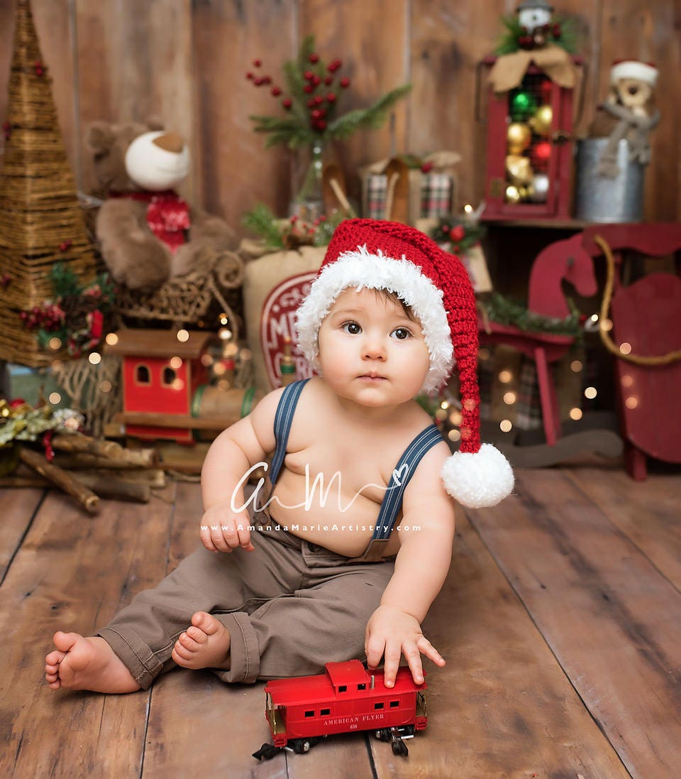 Baby Santa Hat- Newborn Santa Hat- Long Tail Hat- Santa Christmas H...