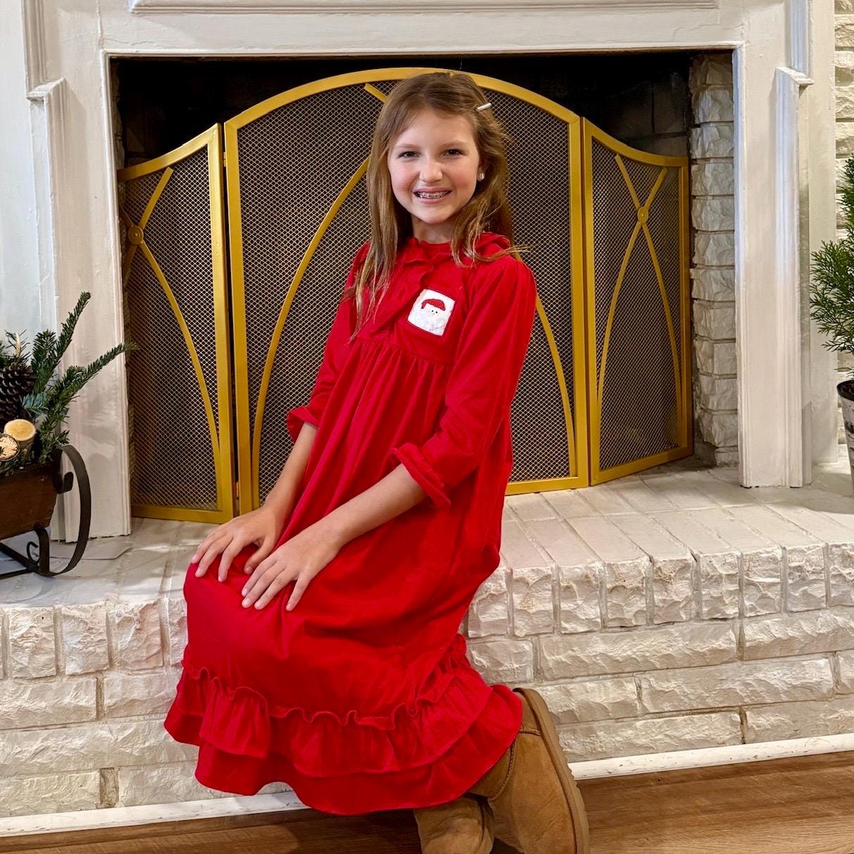 Santa Smocked Christmas Dress in Red - 100% soft knit cotton, Chris...