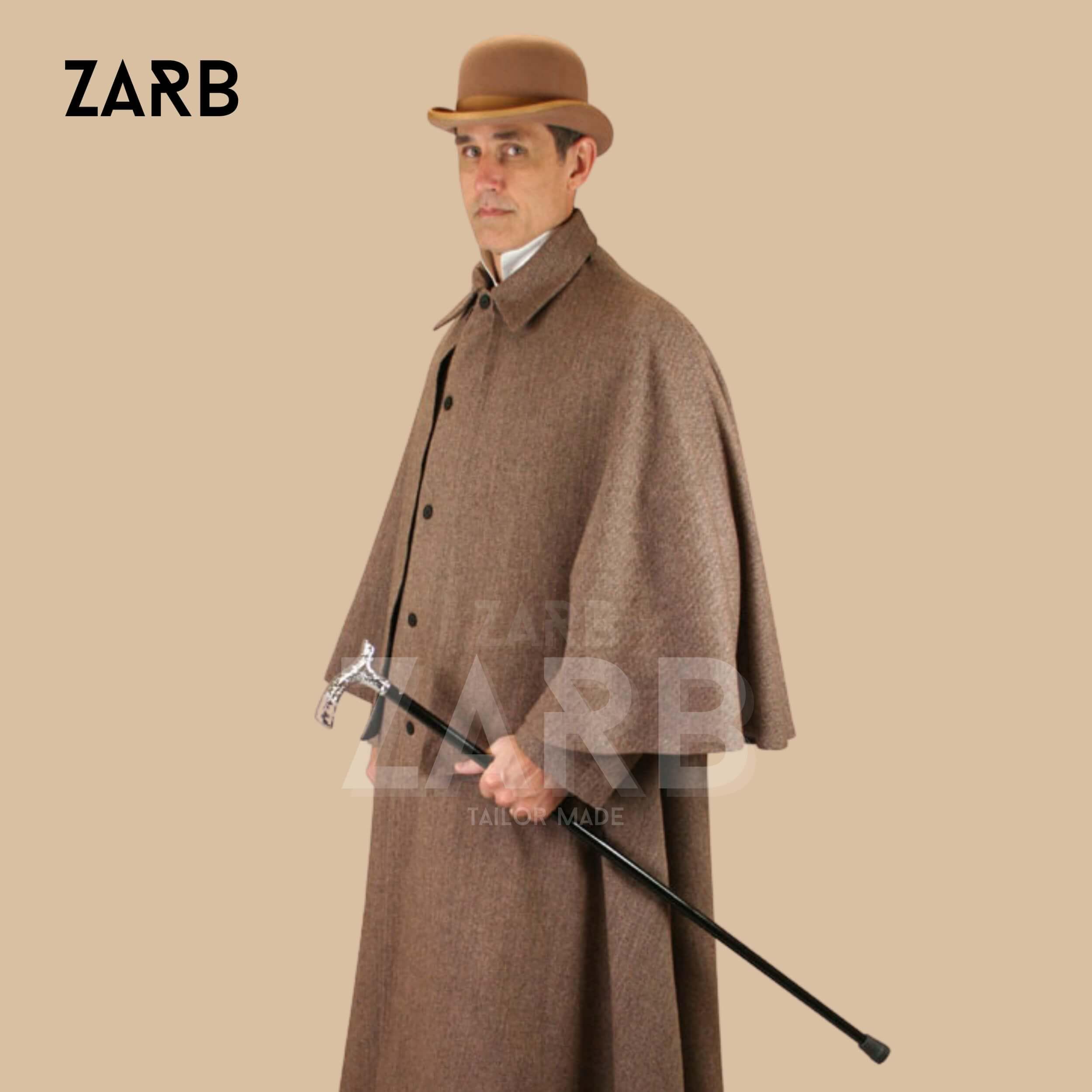 Men's Brown Wool Inverness Cape: Sherlock Holmes Victorian Cloak