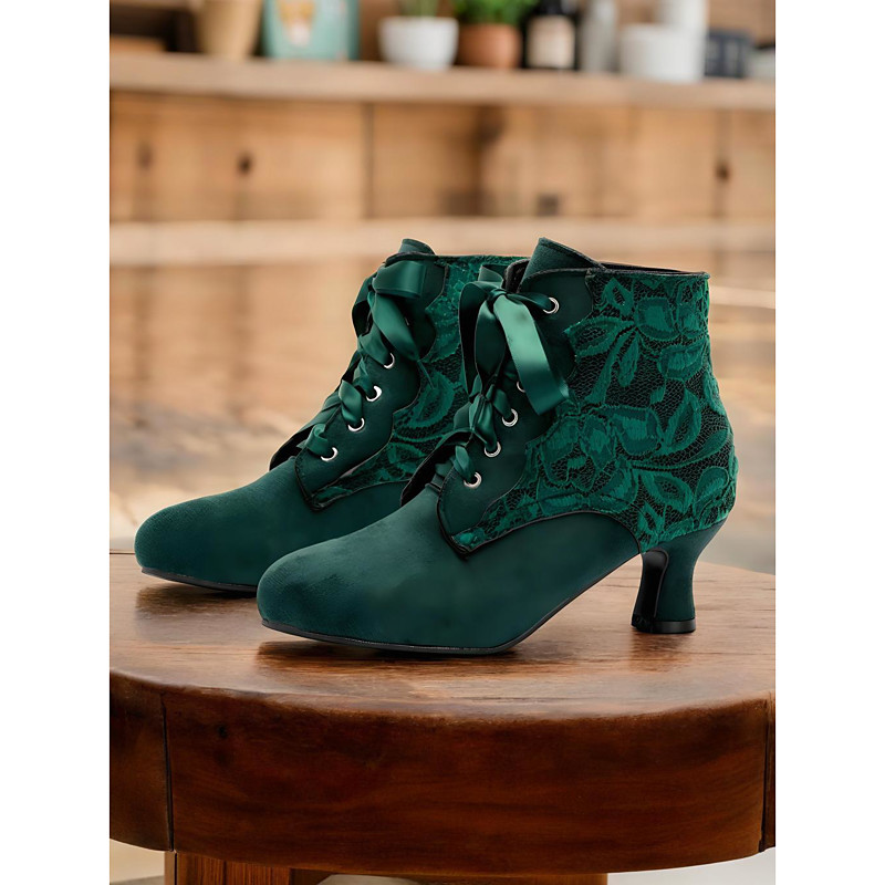 Women's Victorian Lace-Up Ankle Boots - Green Suede High Heel Booti...