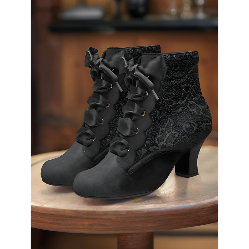 Category:Boots; Materials:Lace; Embellishment:Lace; Season:Spring,Fall,Winter; Heel Type:Kitten Heel...