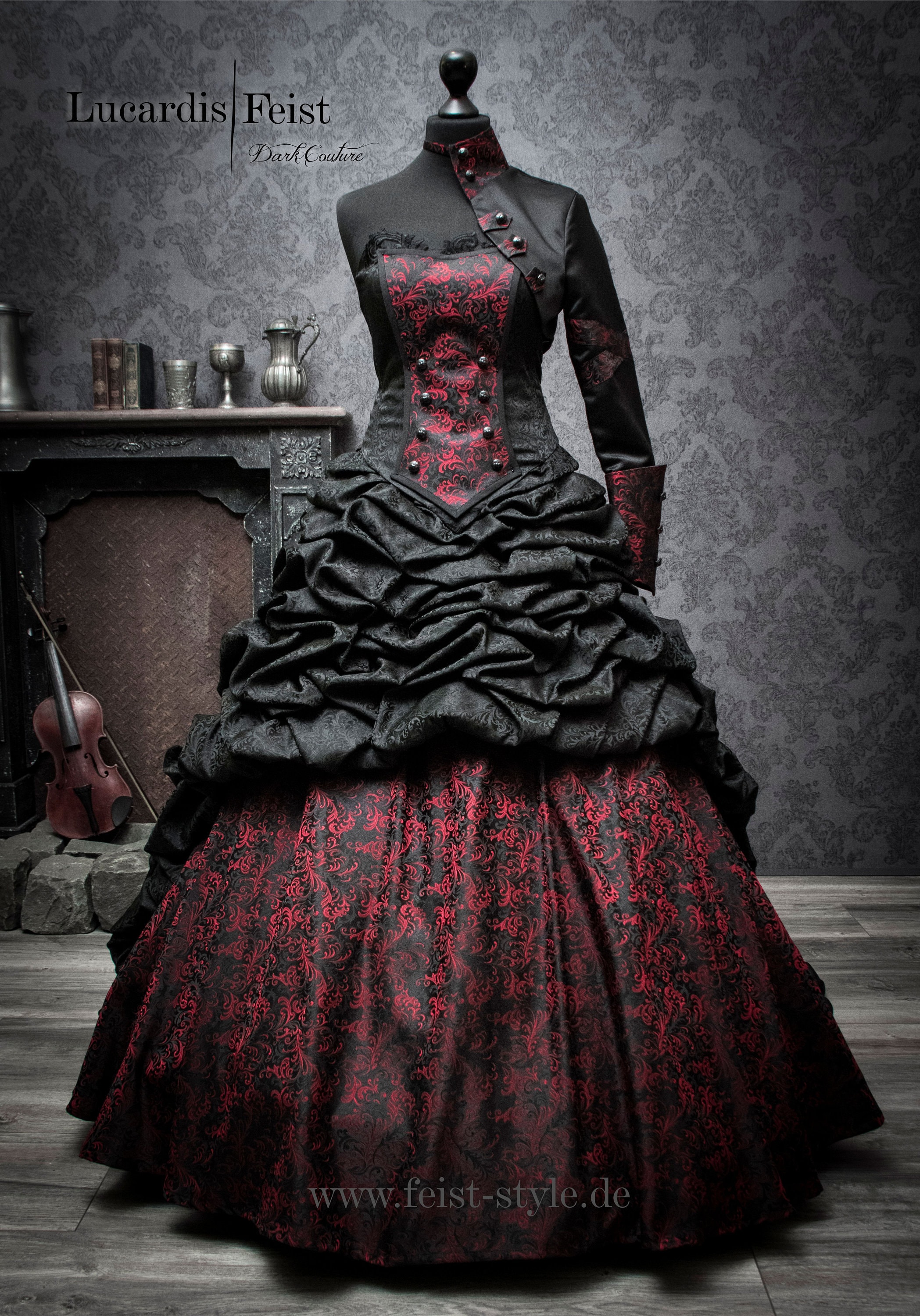 Steampunk dress with exclusive design by Adam And Lilith, featuring steampunk gears and cogwheels. T...