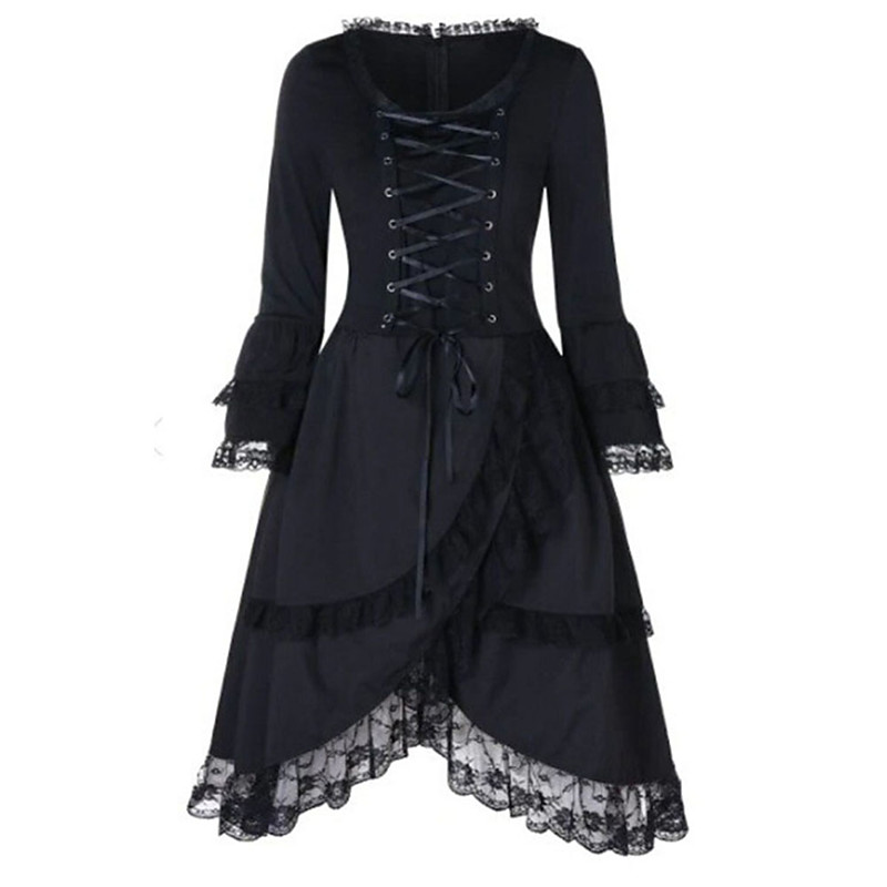Retro Vintage Punk Gothic Steampunk Dress A-Line Dress Cosplay Patc...