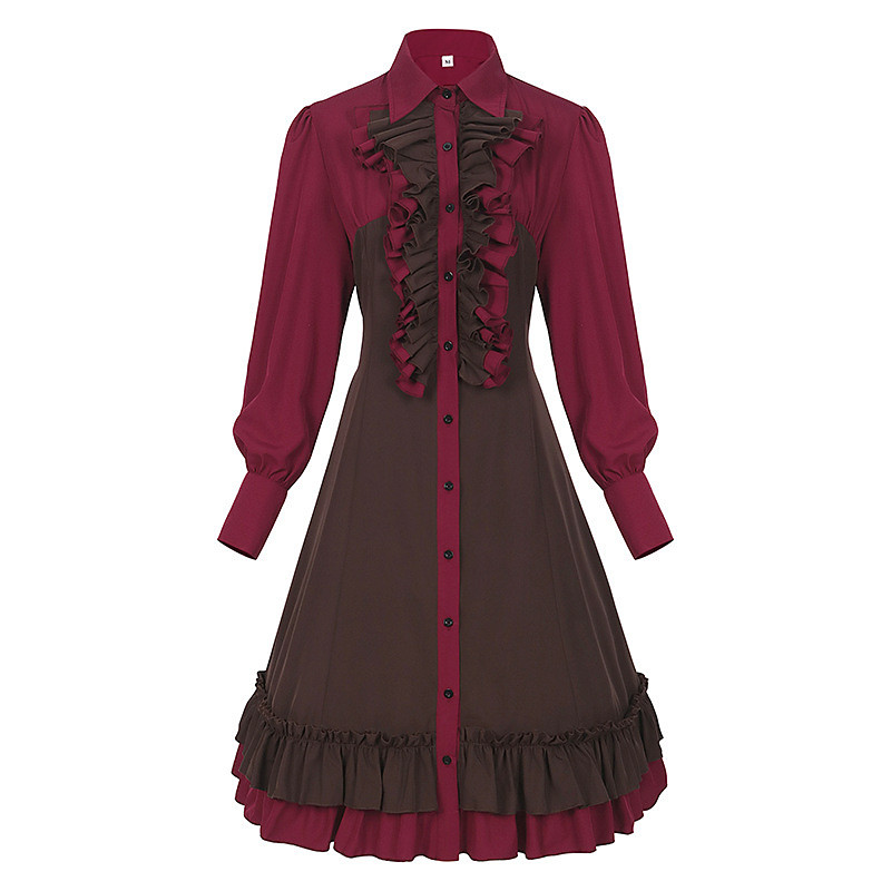 Gothic Lolita Punk Gothic Steampunk Dress Bishop Sleeve Flounced Co...