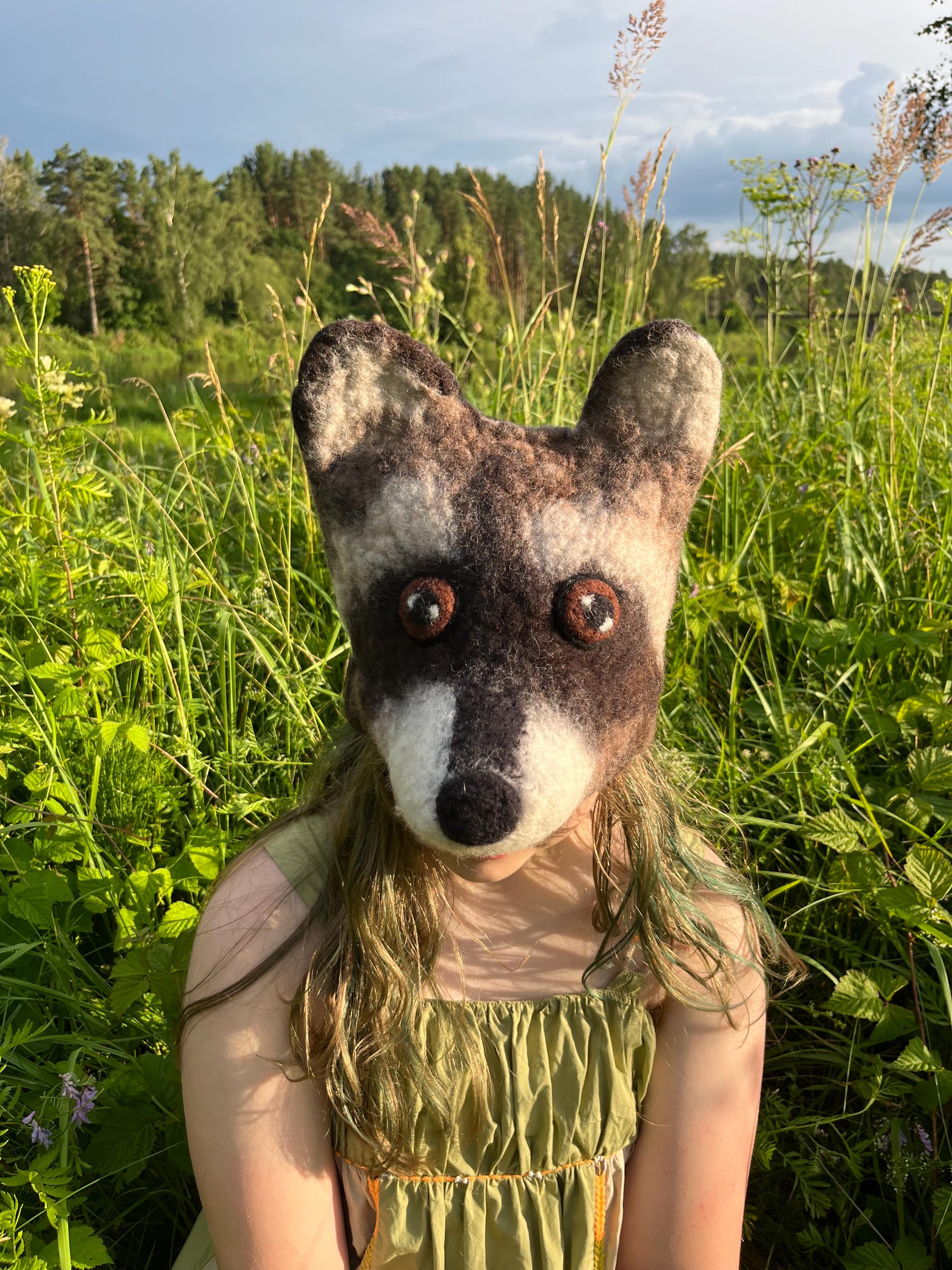 Raccoon hat Felt hat Raccoon head Raccoon costume hat Raccoon mask Mans or Woman winter hat Children...