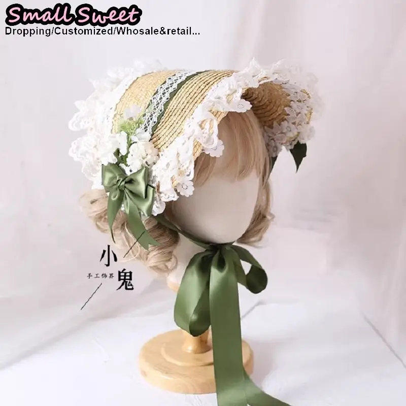 Women Small Sweet Store Lolita Straw Hat Flat-Cap Lolita Handmade B...