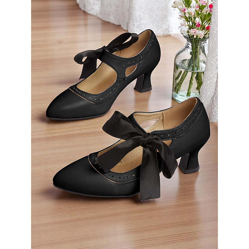 Women's Edwardian Vintage Gatsby Ribbon Heels-1900s Style Purple Ma...