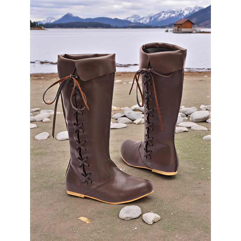 Women's Brown Faux Leather Fold-Over Cuff Side Lace Boots - Authent...