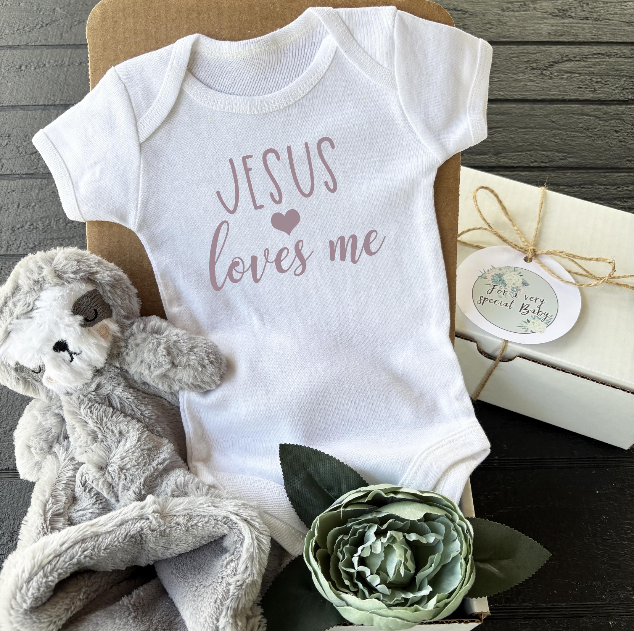 Jesus Loves Me Baby Onesie GIFT BOX Baby Shower Gift Onesie Bodysui...