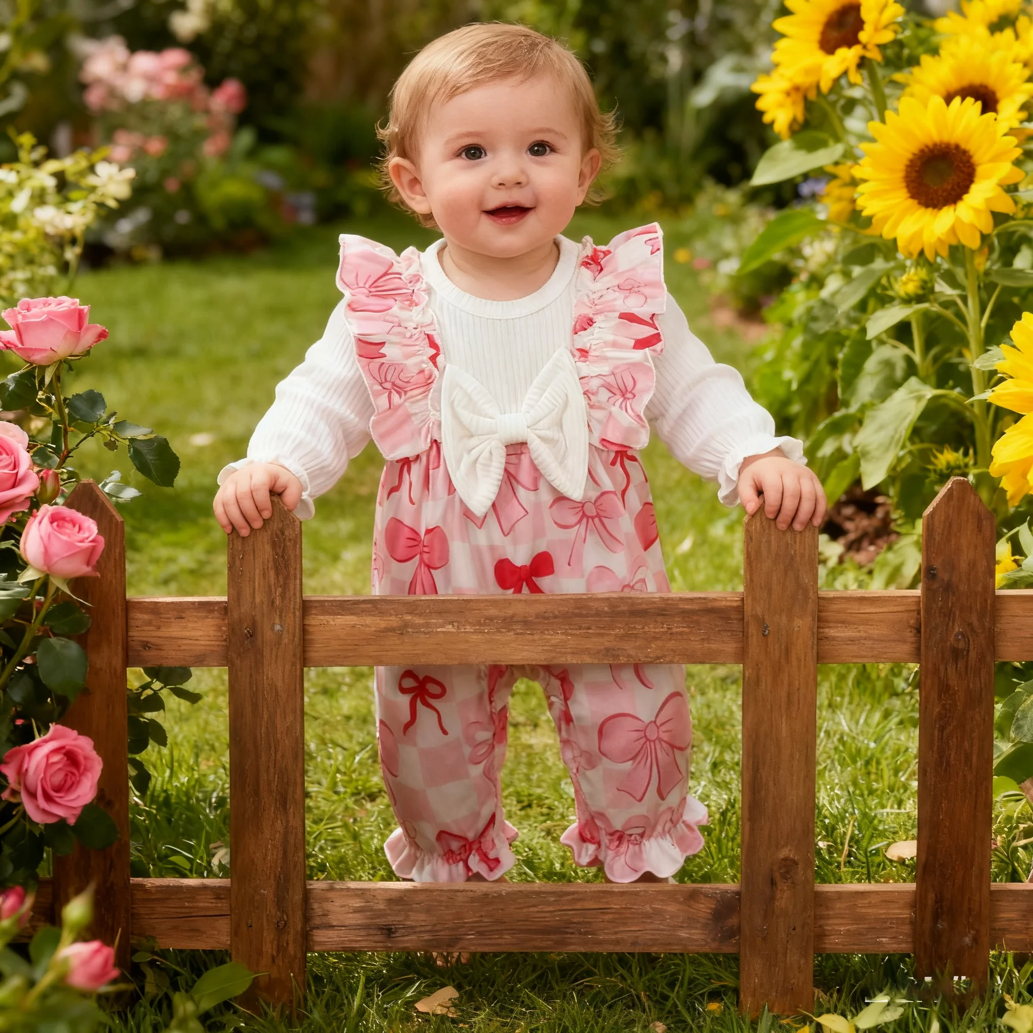 Newborn Baby girl Bodysuit Ruffled edges Bow print Bodysuit for 0-18 Months Cute Baby girl Spring an...
