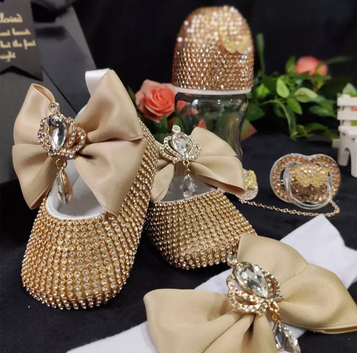 Newborn Baby Gift Set, Baby shoes, Bottle, Baby Headband, Baby Diam...