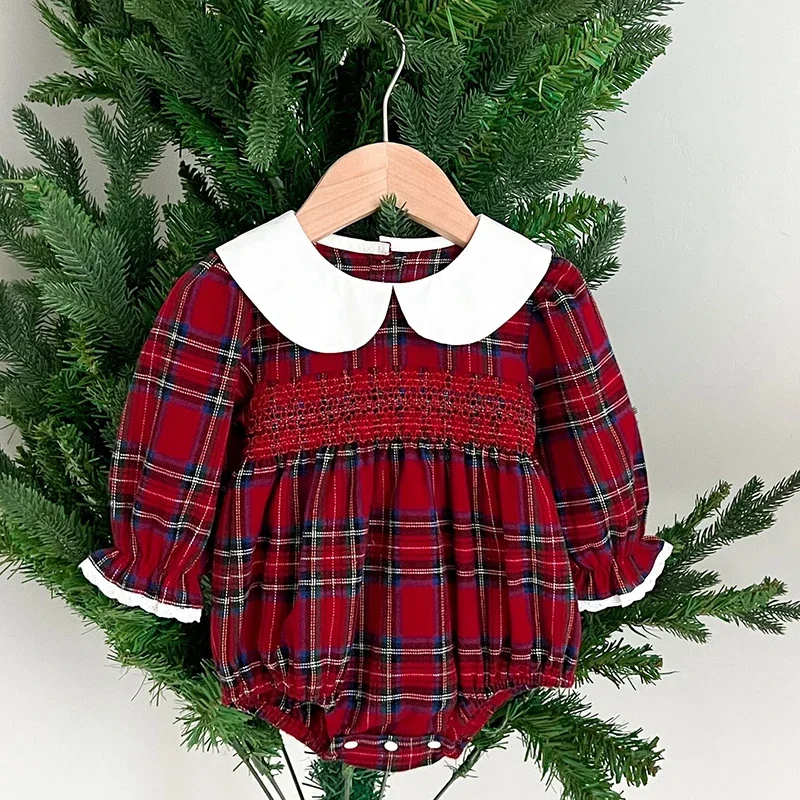 Christmas Infant Baby Girl Romper Autumn Winter Newborn Baby Girl Children Clothes Red Plaid Lapel L...