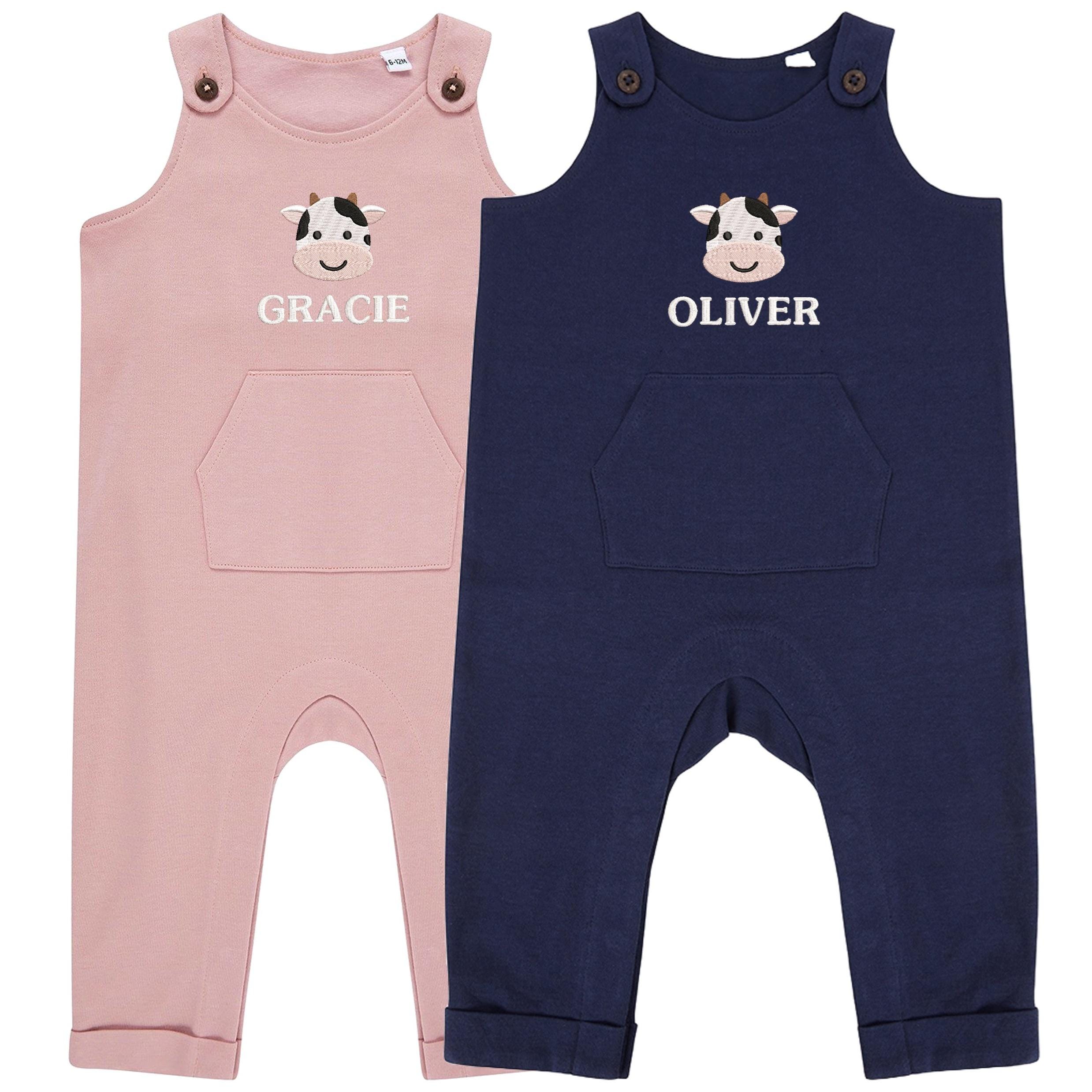 Embroidered Cow Personalised Name Baby & Toddler Organic Cotton...