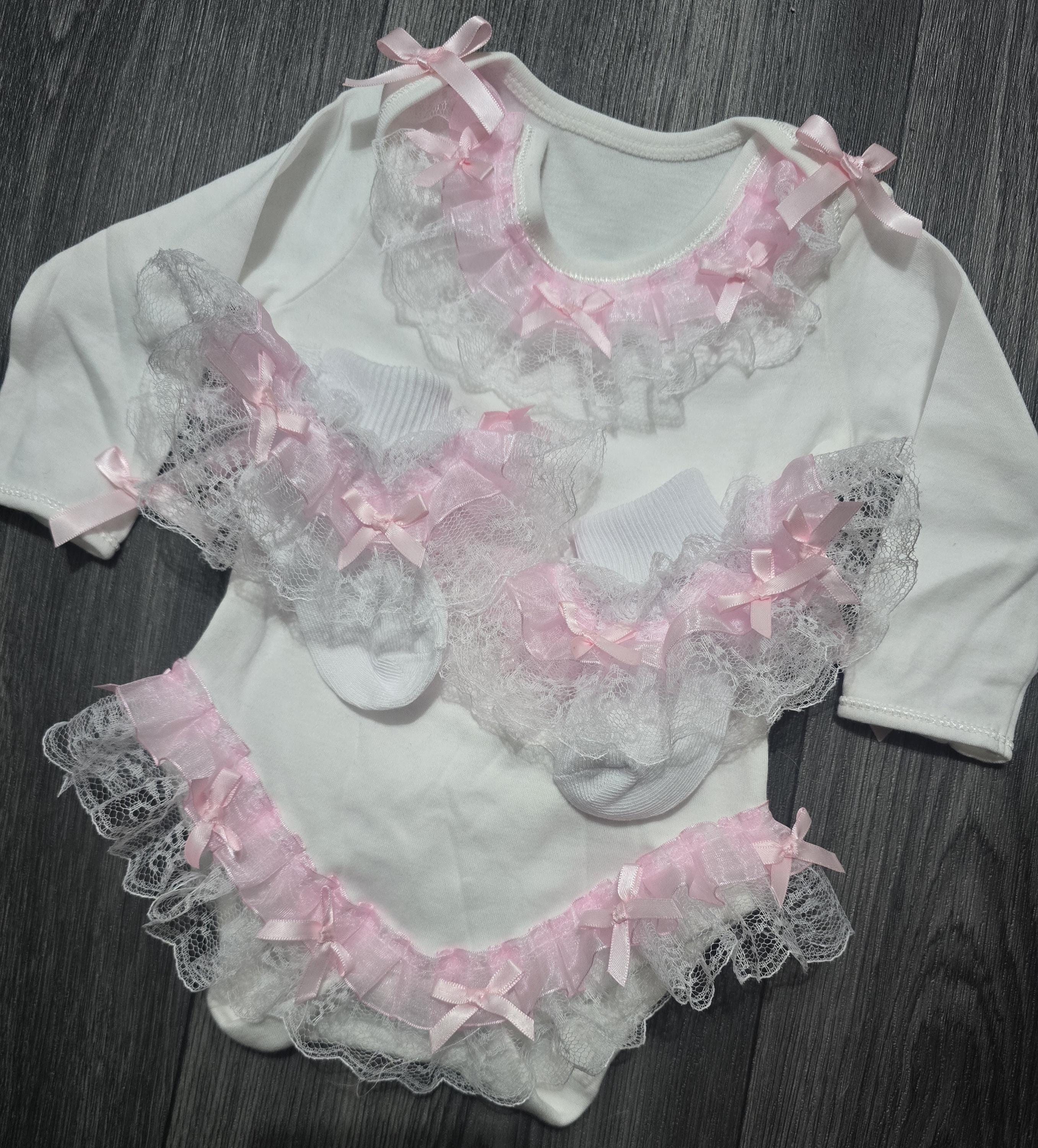 Spanish style frilly long sleeve baby bodysuit and matching frilly socks Cotton vest with beautiful ...