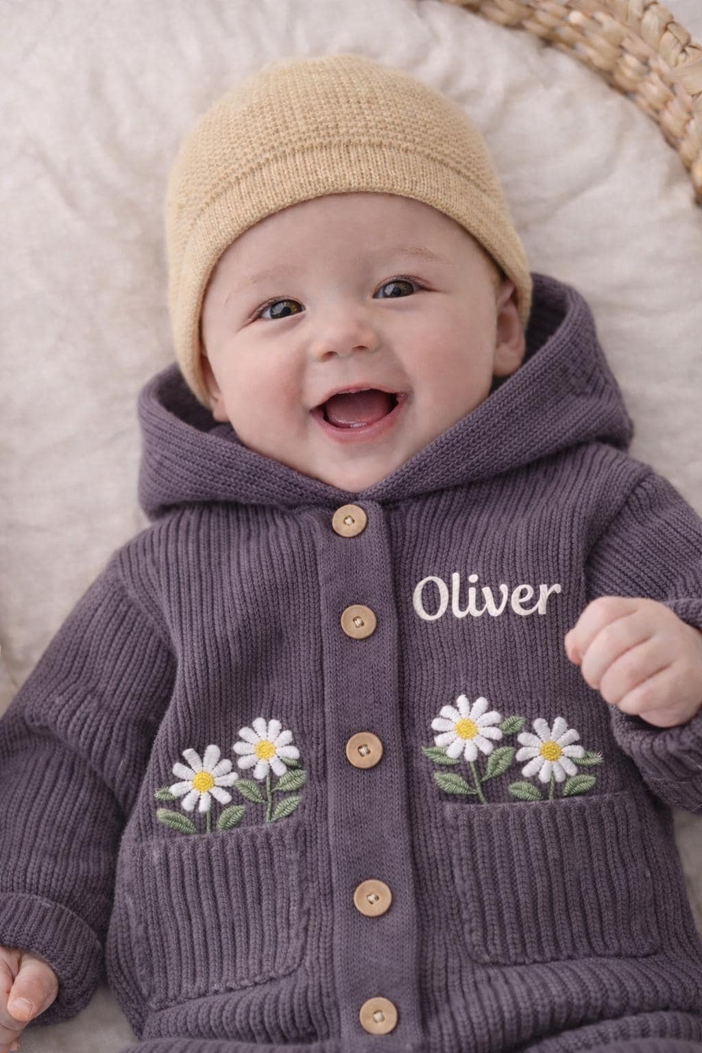 Personalized Baby Knitted Romper, Custom Baby Onesie Outfit, Soft N...