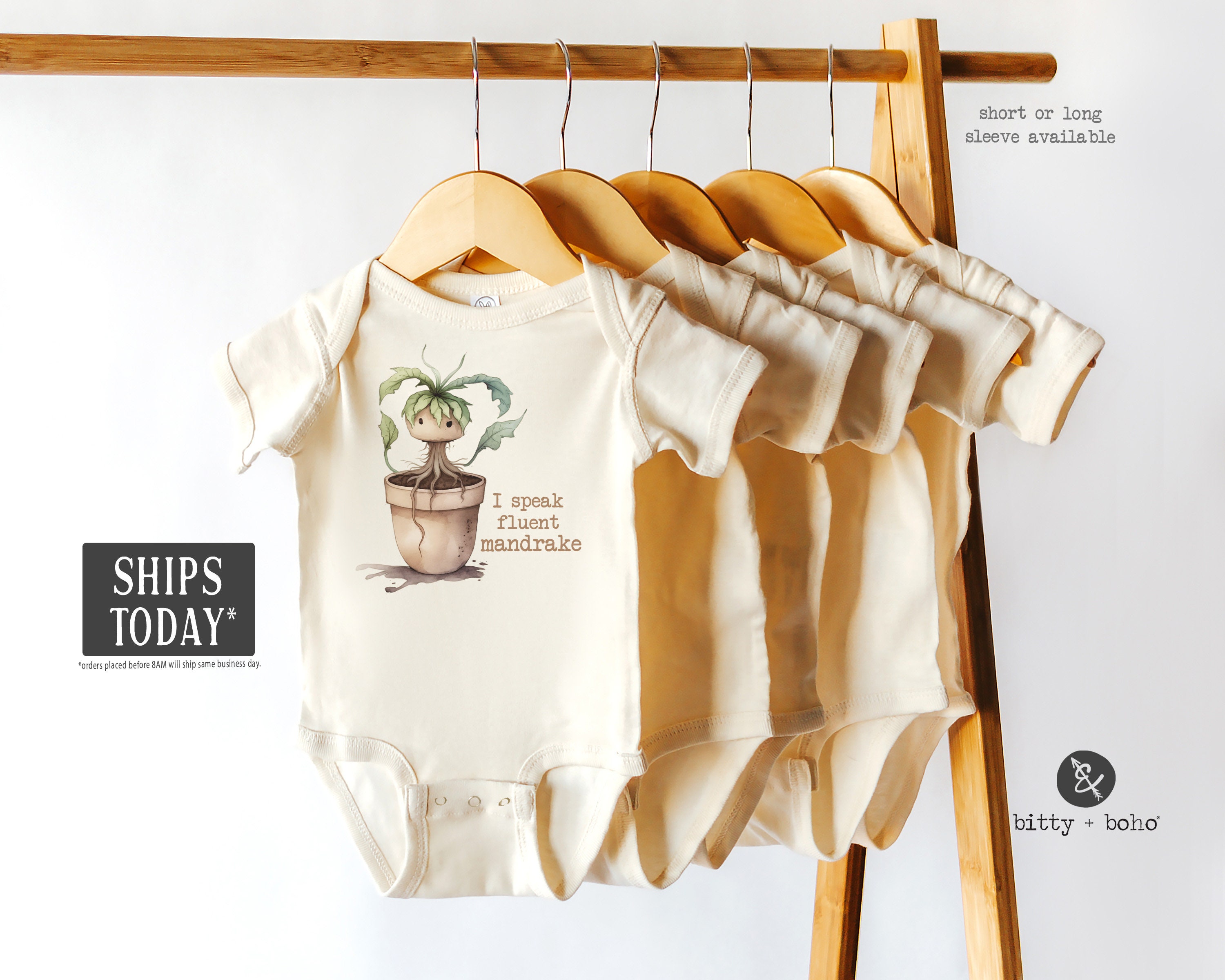 I Speak Fluent Mandrake Baby Bodysuit, Magic Baby Shower Gift, Cute...