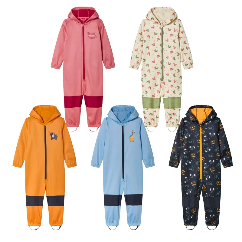 Children's outdoor soft-shell onesies are waterproof and fleece breathable