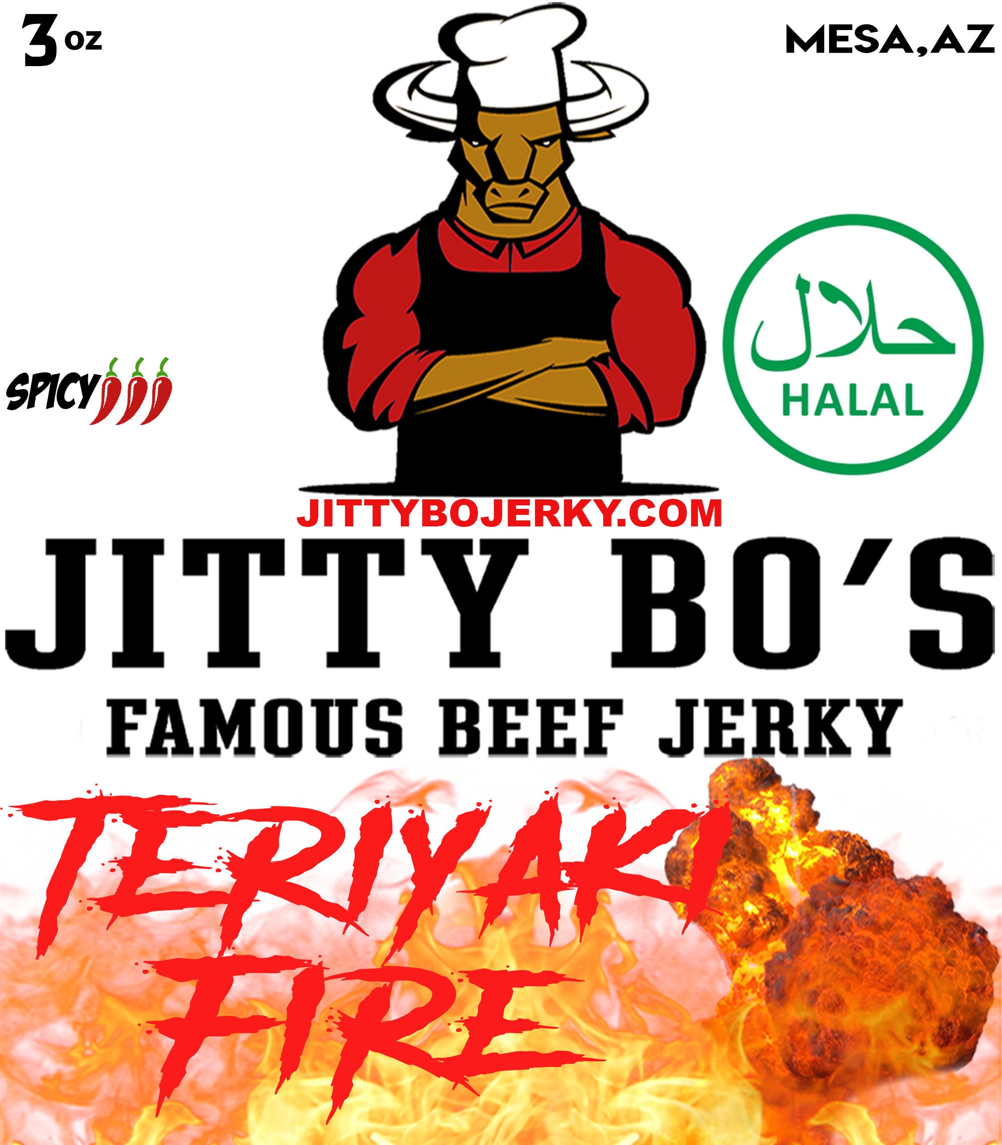 1- 3 oz bag of Beef Jerky ( Halal ) Flavor: Teriyaki Fire ( Spicy Hot ) JittyBo's Famous Beef Jerky ...