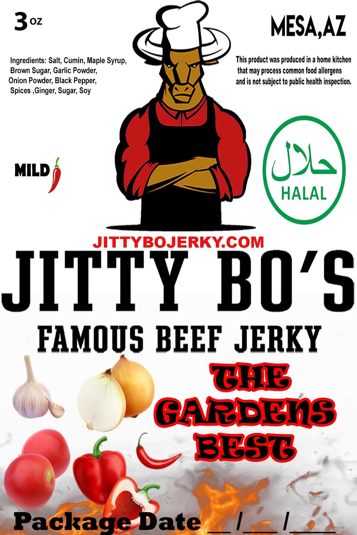 1- 3oz bag of Beef Jerky ( Halal ) Flavor: The Gardens Best ( Mild ) JittyBo's Famous Beef Jerky is ...