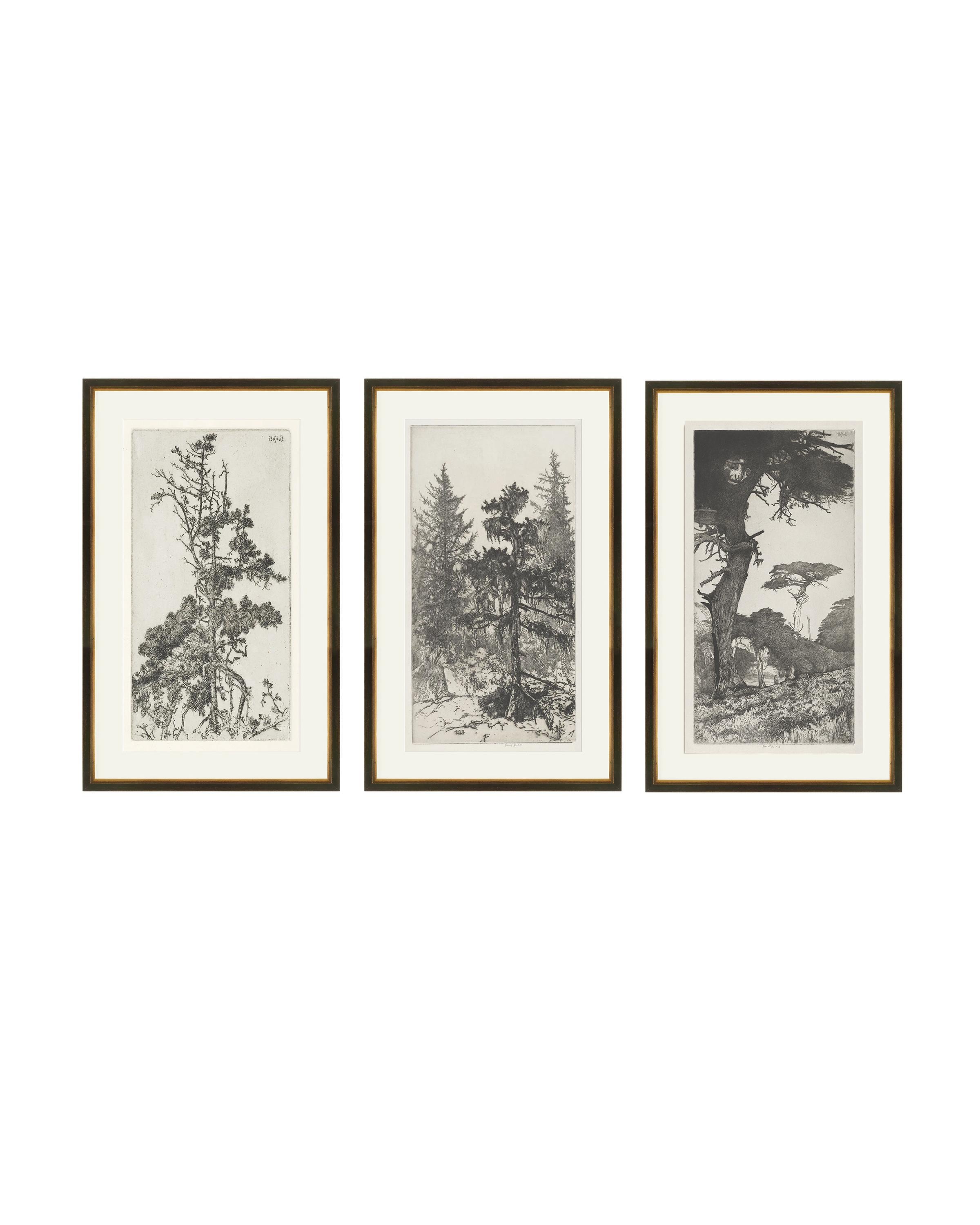 Framed Set of 3 Trees Etchings. Set of 3 Wall Art. Trees Drawing Pr...