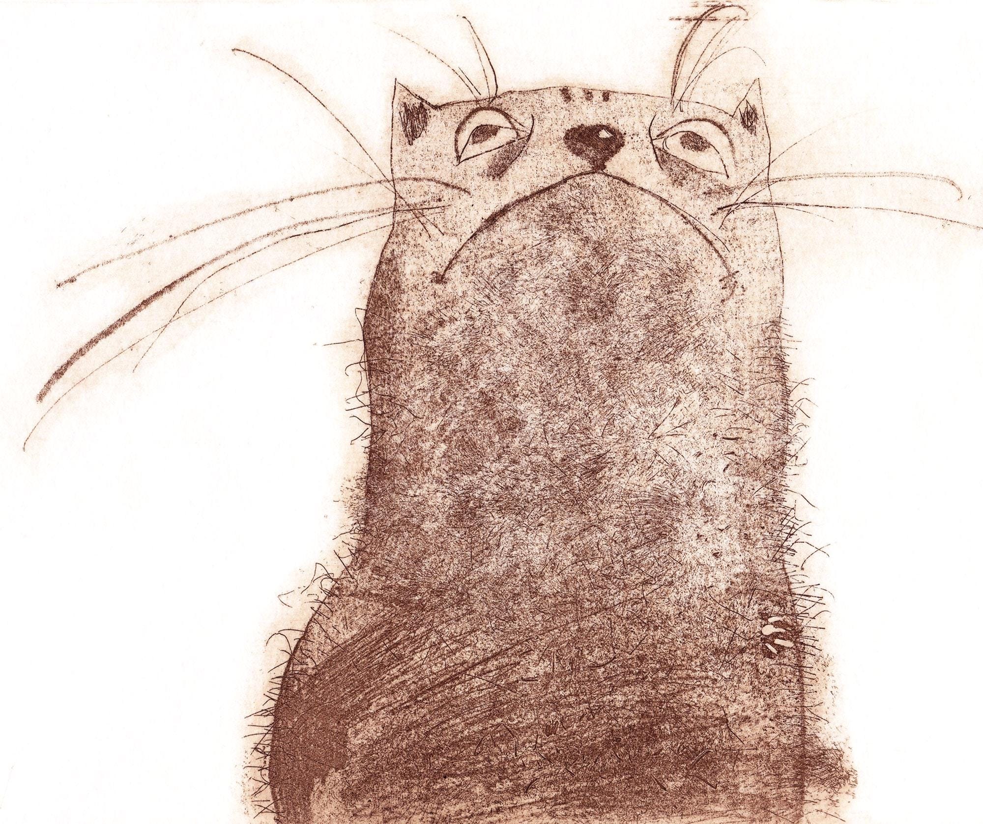It's a limited edition original hand pulled etching. Self-satisfied cat... Medium: soft-ground etchi...