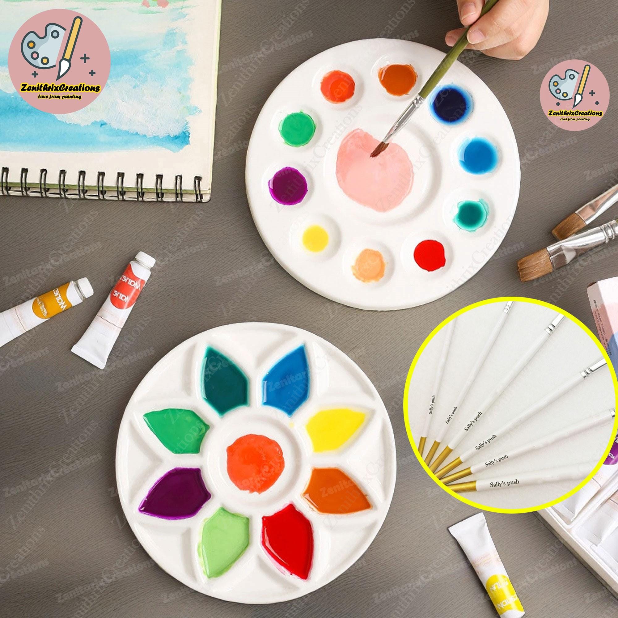 Custom Ceramic Watercolor Palette Sey, White Artist Paint Palette,H...