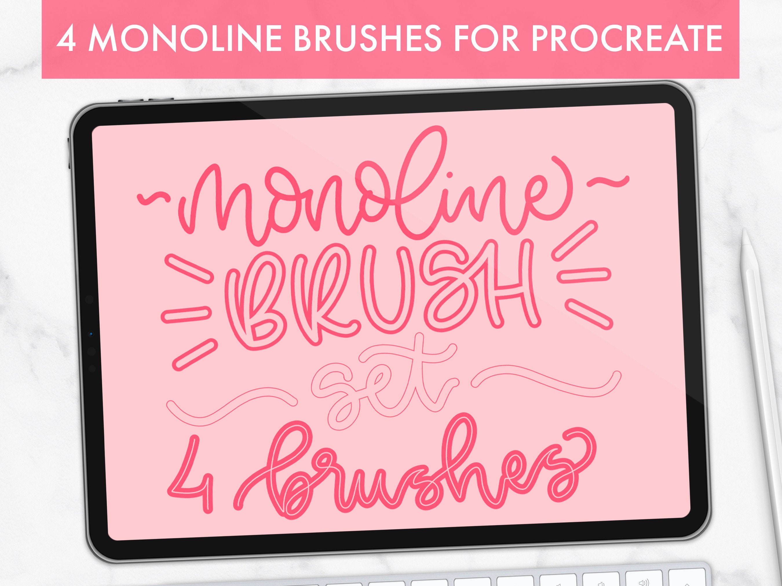 Procreate Monoline Brush Set, Monoline brush, Outline brush, Letter...