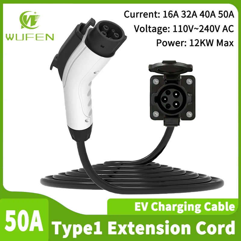 WUFEN EV Charger J1772 Extension Cord 50A Max 12KW Type 1 to J1772 ...