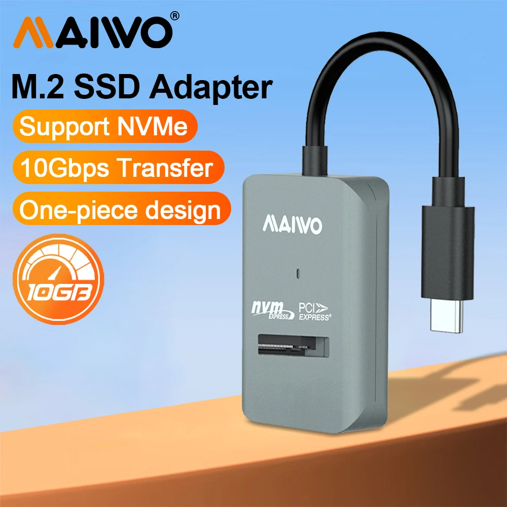 MAIWO 10Gbps M.2 NVME SSD Enclosure Case Type-C M.2 PCIE NVME SATA SSD Adapter Tool-Free Supports M ...
