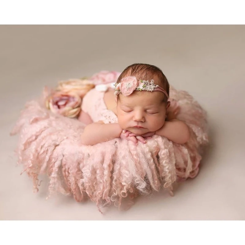 16”Curly Round Felted Blanket, Wool Newborn Photography Props for Photoshoot, Felted Baby Wrap...