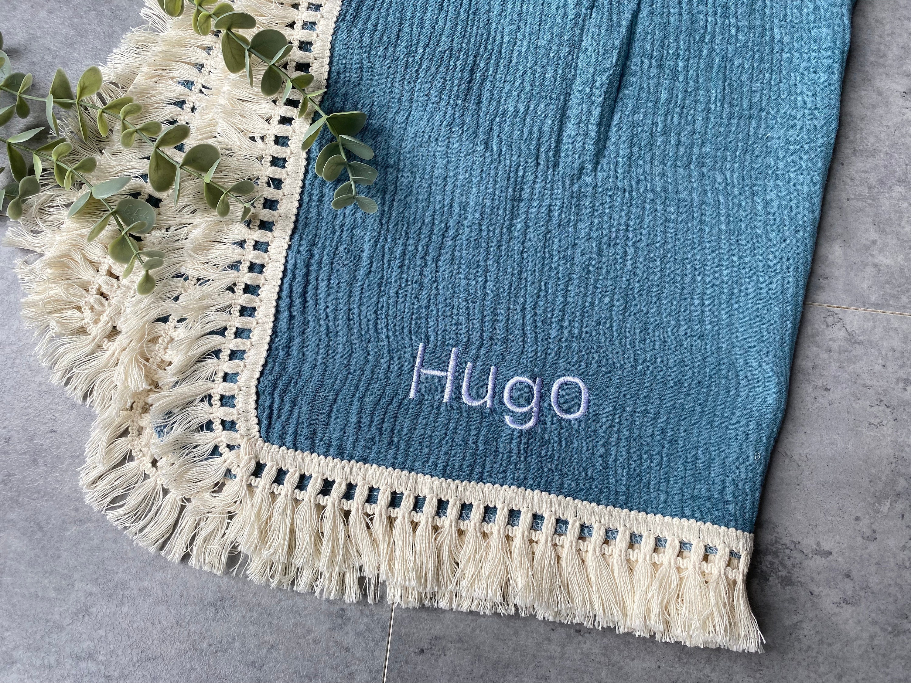 Personalised Embroidered Muslin Blanket Baby Gift Baby Boy Gift Bab...