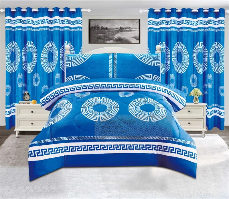 Polar Fleece Blanket Set with Curtains Winter Comforter Warm Borreg...