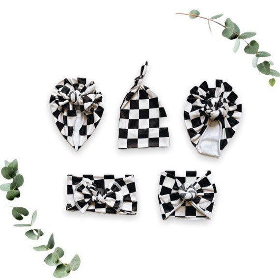 Black and White Checkers, baby turban, baby hat, knot headband, kno...