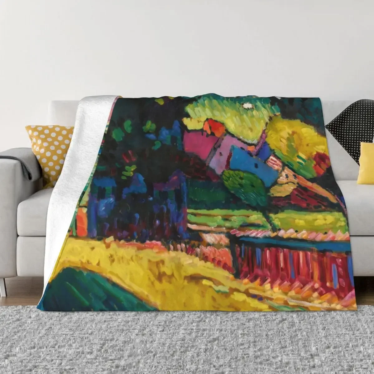 Wassily Kandinsky Murnau - Landscape with Green House Throw Blanket Soft Plush Plaid Winter bed blan...